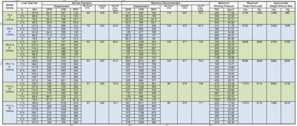 Parameter of A45T8A DUPLEX POWER PUMPS